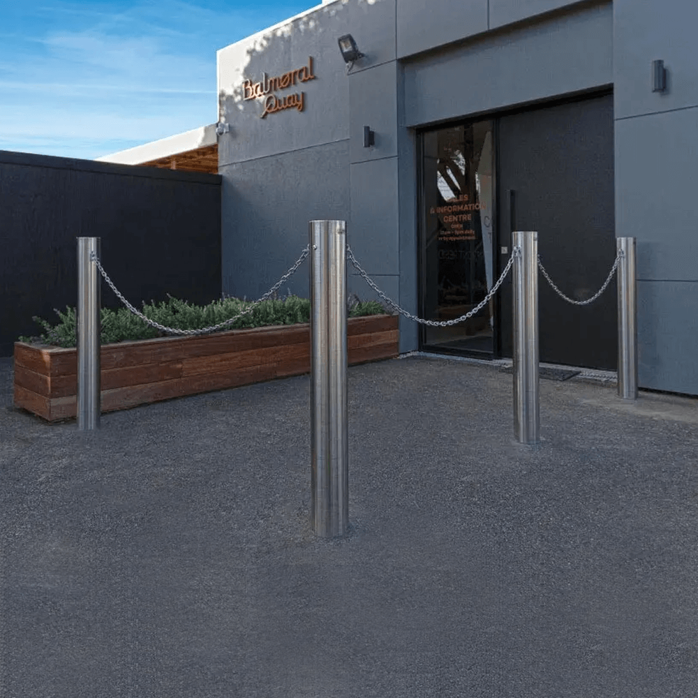 Enhance functionality with optional chain rings, available in pairs or separately for retrofitting to existing bollards. The thoughtfully designed Architectural Designer Bollard not only serves as a protective barrier but also adds a touch of architectural refinement to your space.