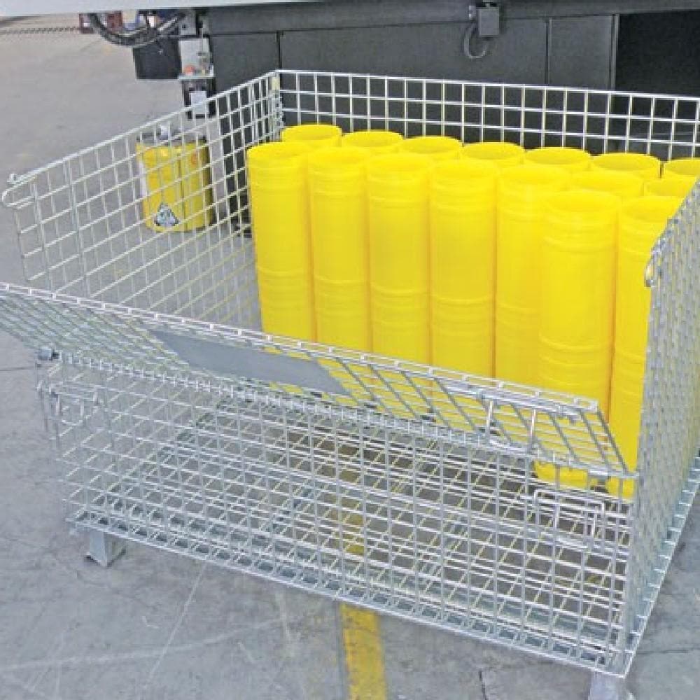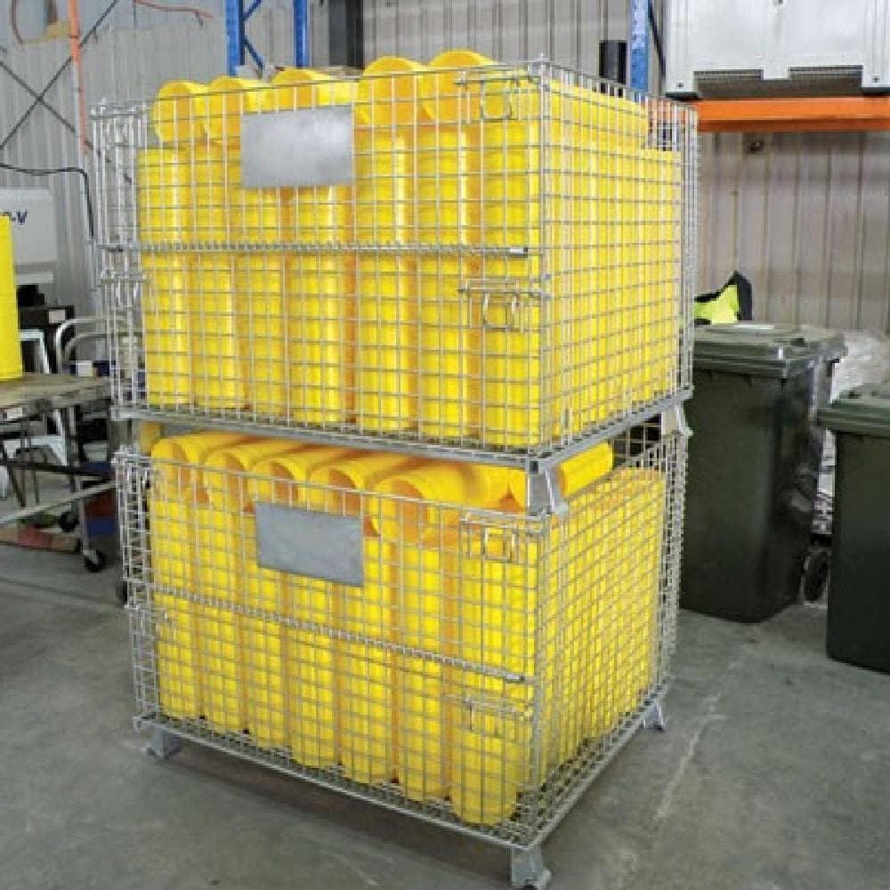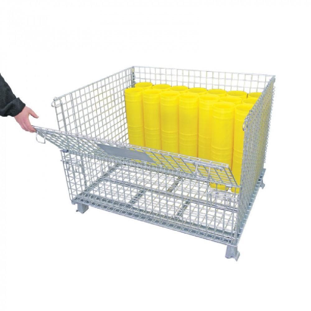 Strong Collapsible Mesh Storage Cage With Self Locking Latches For Transport And Warehousing