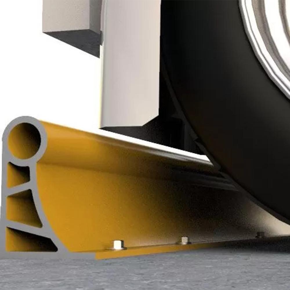 The Barrier Group Bump Rail is a high strength aluminium extrusion, which serves two purposes at the same time. The rail is curved on one side and flat on the other. When used with the flat side towards an oncoming vehicle, it acts as an asset protection railing, preventing the incoming forklift or any other vehicle from crossing this boundary.