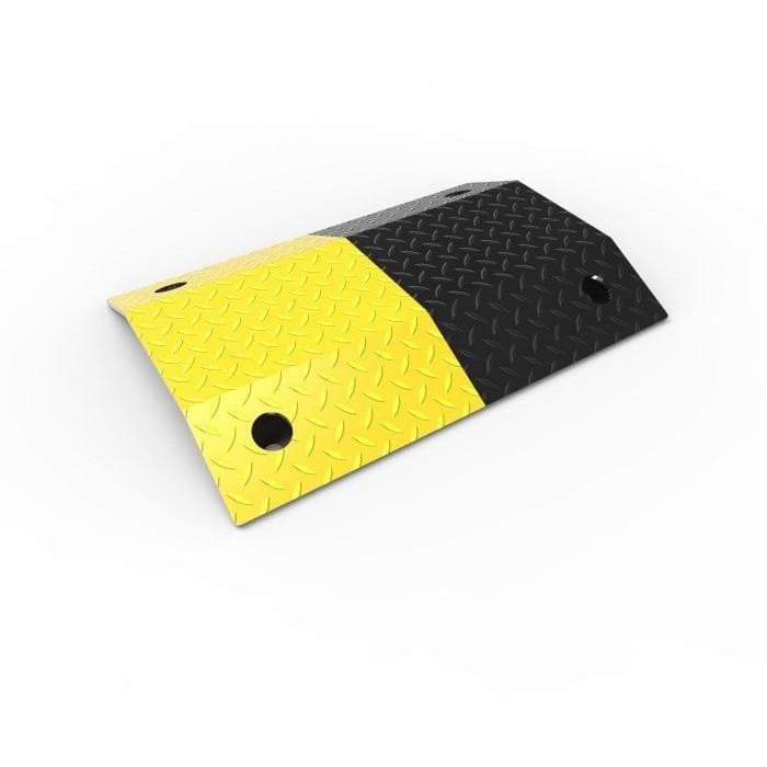 Steel End Caps by Barrier Group to fit Slo-Motion Heavy Duty Steel Speed Hump. It is a perfect addition to the speed hump to minimise the trip hazard or to serve unanticipated approach angles.