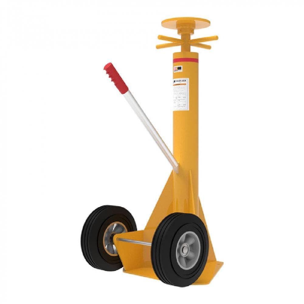 The Barrier Group Rachet Trailer Stabilising Jack features a heavy-duty ratchet that works to pull up a vehicle, just like a normal car jack. A pair of wheels beneath this jack stand helps you with moving it around.
