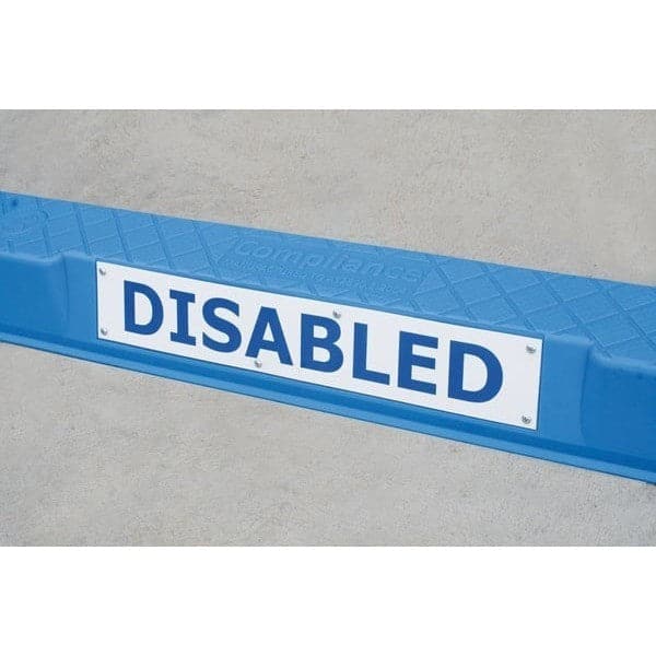 Barrier Group Wheel Stop Signs measure 75mm x 450mm and are designed for the Barrier Group Compliance Wheel Stop. They are made from 1.4mm polypropylene with screen printed text. Available in VISITOR (Black text), DISABLED (Blue text), 15 MINUTE (Black text), and RESERVED (Black text).