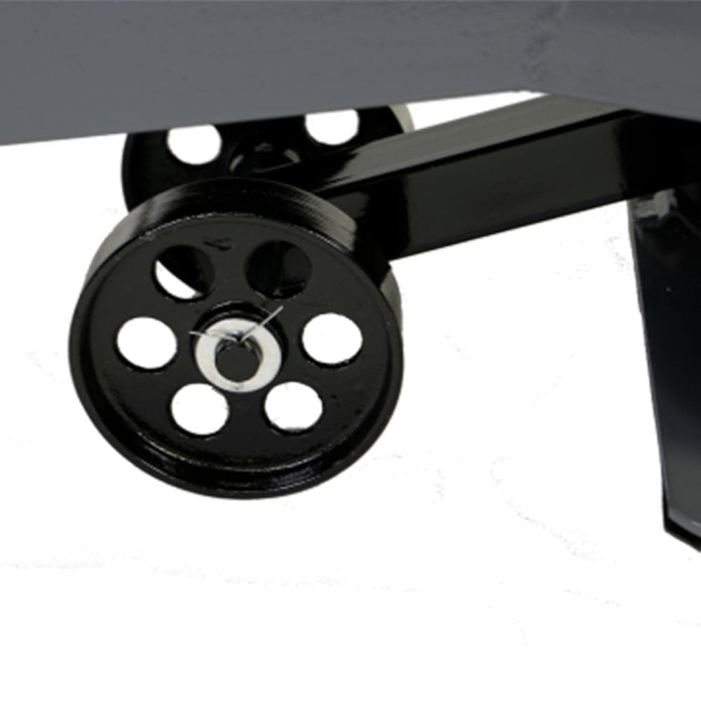 - "NON-SKID BASE" - Four ply pads of rubber grips are bolted and glued to the 6mm steel floor plates and they will not skid ahead of the wheels.