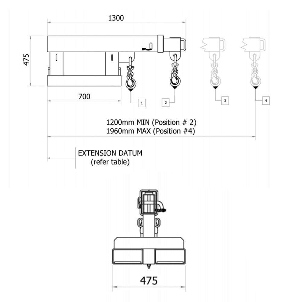 It features a 3.5-metre reach when it is fully extended, thereby allowing for long-reach lifts. To use this DHE attachment, slide it onto the fork tyne and use the safety chain to secure it.
