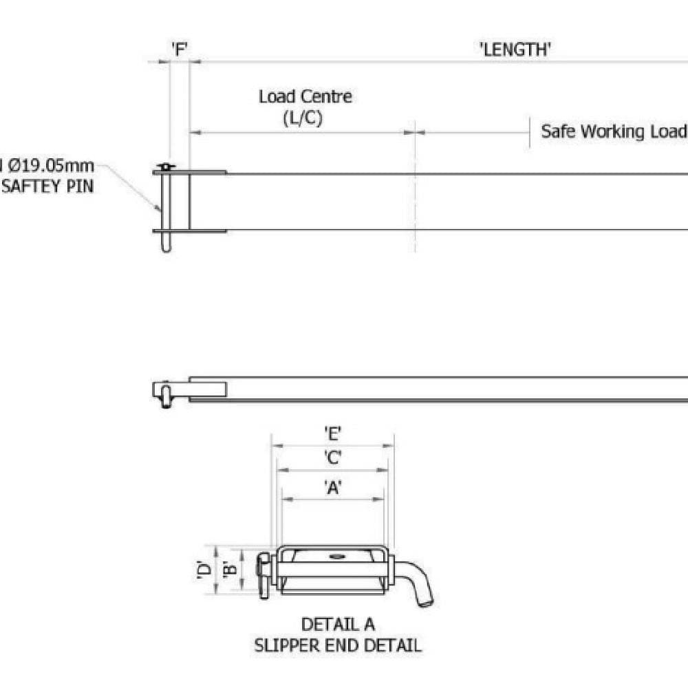 The DHE Forklift Slippers For Forklifts Up To 900kg - Class 1 complies with AS2359.15 which states that fork slippers used for general usage should be no longer than 167% of the supporting tyne's length.
