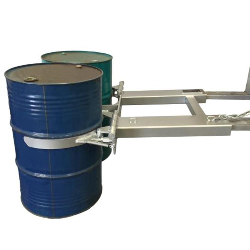 This model was designed for a standard 205-litre steel drum. It features a fully automatic clamping action that enables you a safe and precise placement of drums without the driver having to leave the Driver's seat. The DHE Automatic Drum Lifting Forklift Attachment also has a feature that allows the unit to adjust to heavier loads, making the grip tighter.