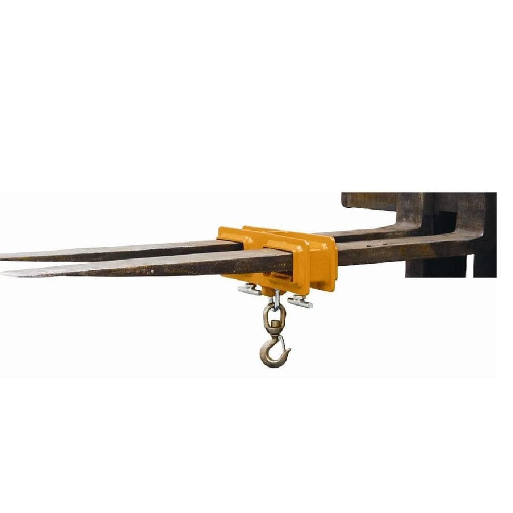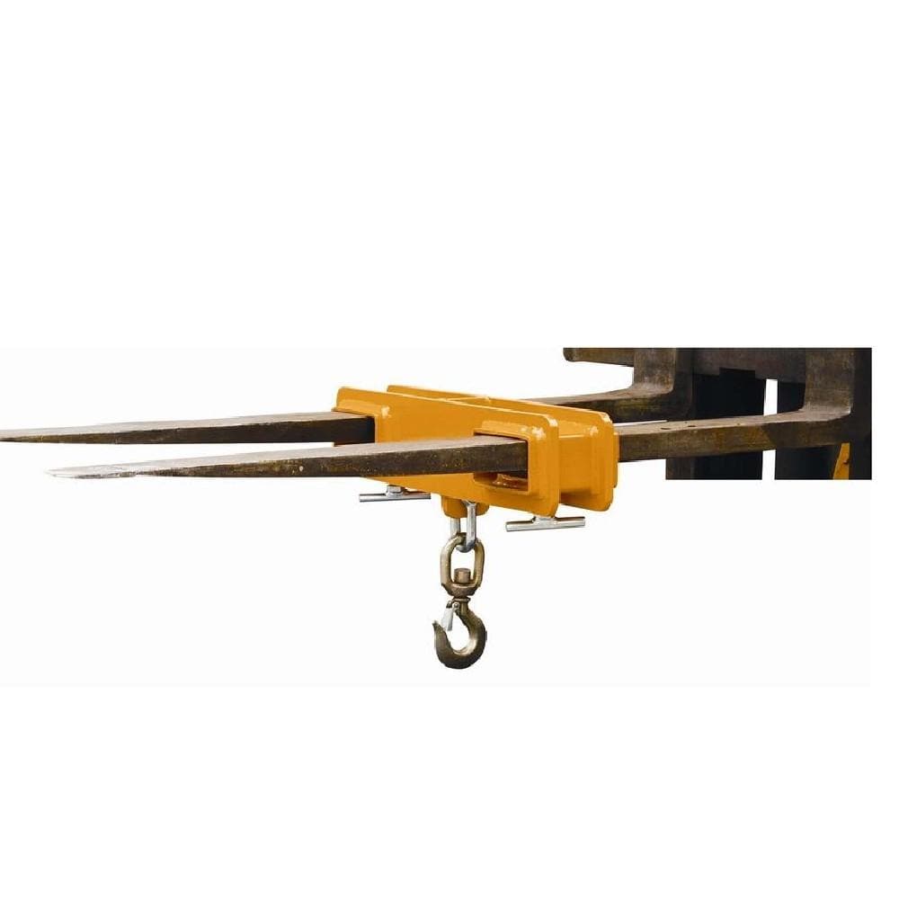 Simply slide the attachment over your forklift's tynes, tighten the screws, and voila! The hook beneath the attachment seamlessly converts your forklift into a capable crane, lifting weights of up to 1 tonne with ease.