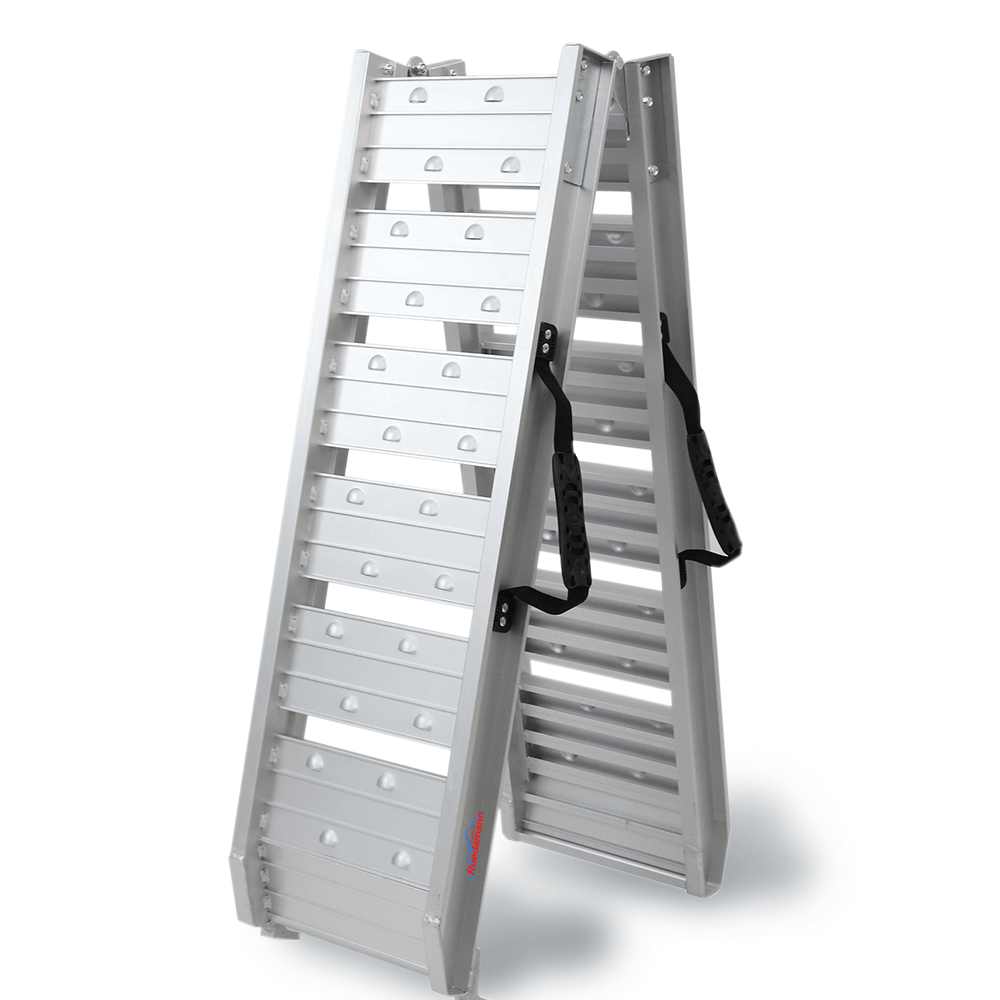Fold and unfold it effortlessly, thanks to the heavy-duty hinge and welded panels, allowing for multiple uses without any wear and tear. The aluminium alloy construction of this folding motorcycle ramp ensures superior hardness and toughness.