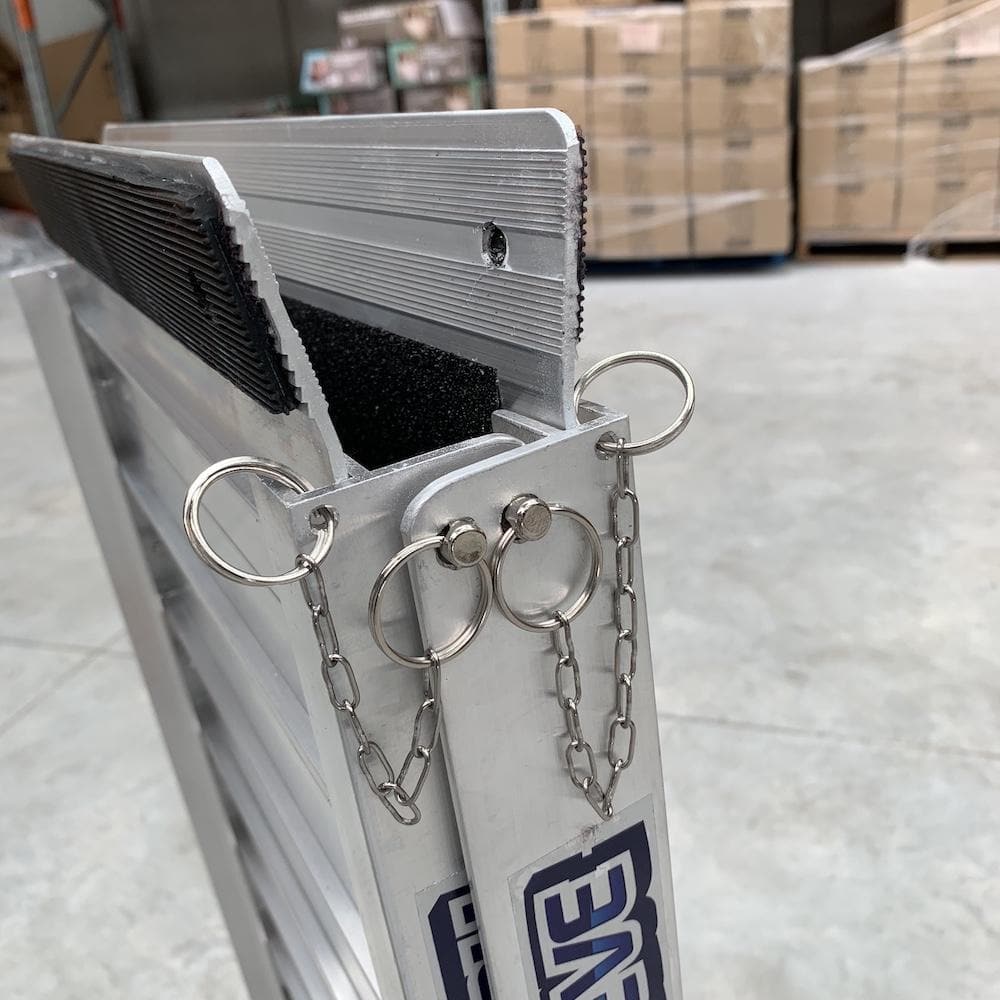The Super-Grip ramp comes complete with an anti-slip high-traction surface, 50mm side rails to prevent wheelchairs and walkers from veering off the side as well as pre-drilled holes and locking pins to secure the ramp in place when in use you can rest assured knowing that you're safe while using the ramp.