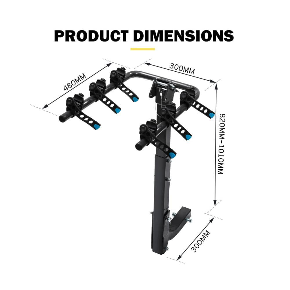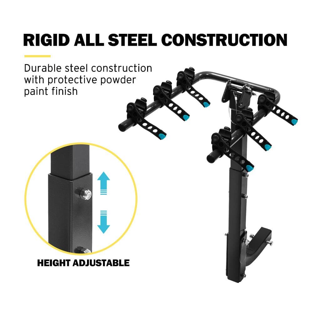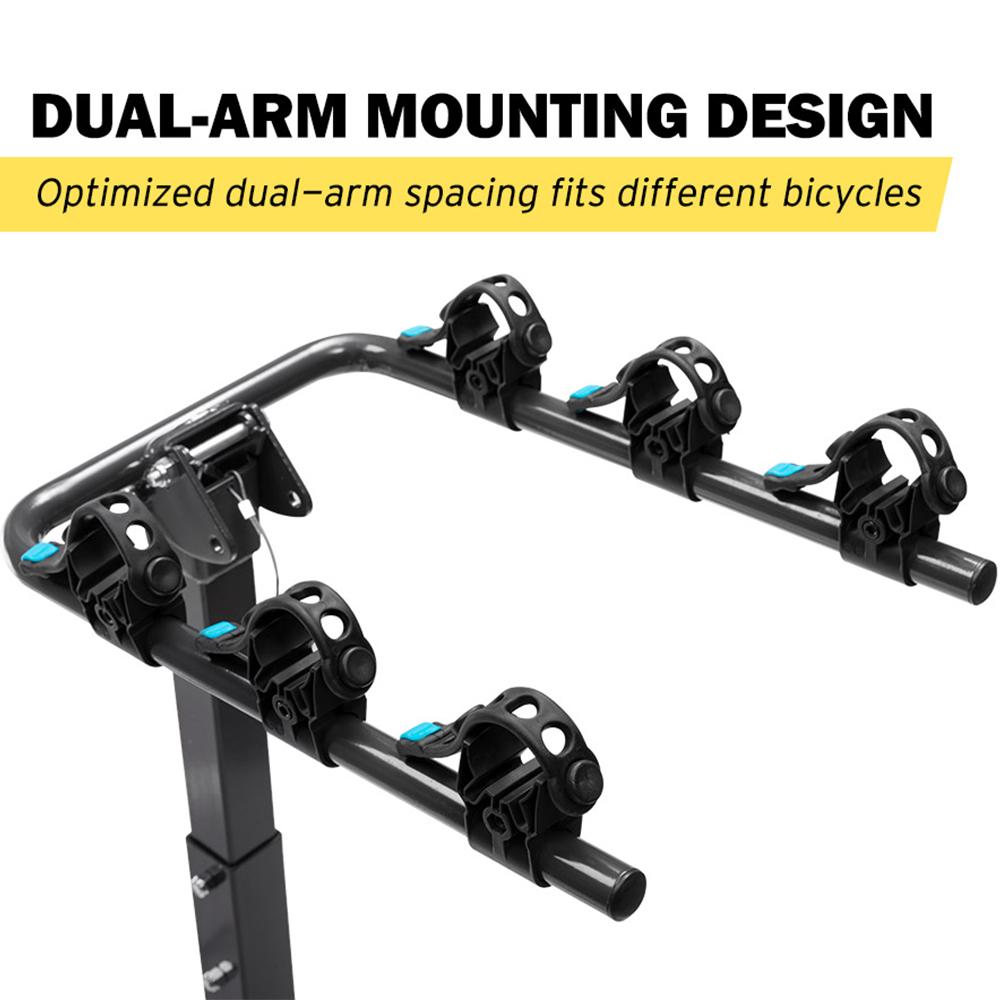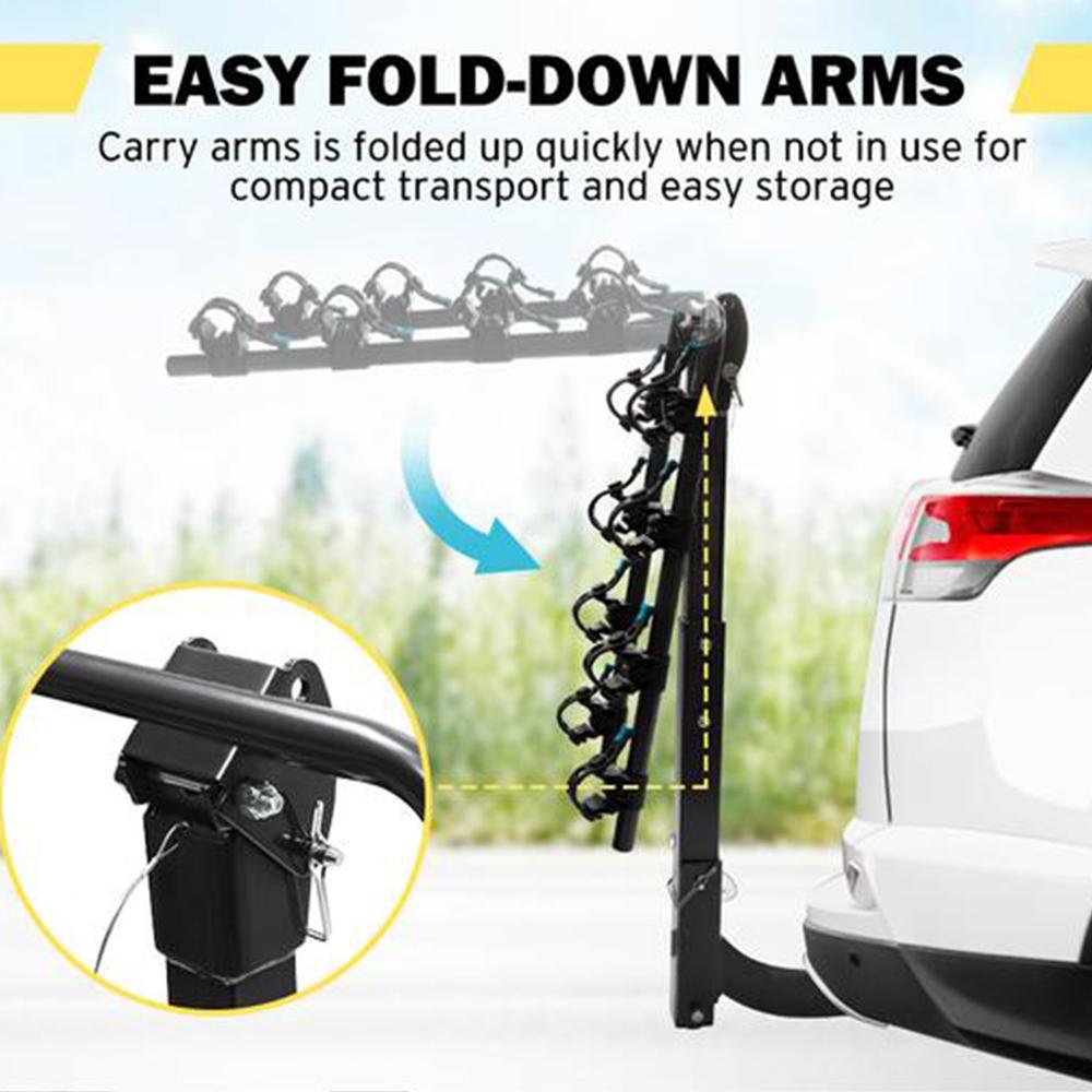 Hitch-Mounted Bike Rack Carrier With Folding Arms Carries Up to 4 Bikes and Suits Any Cars