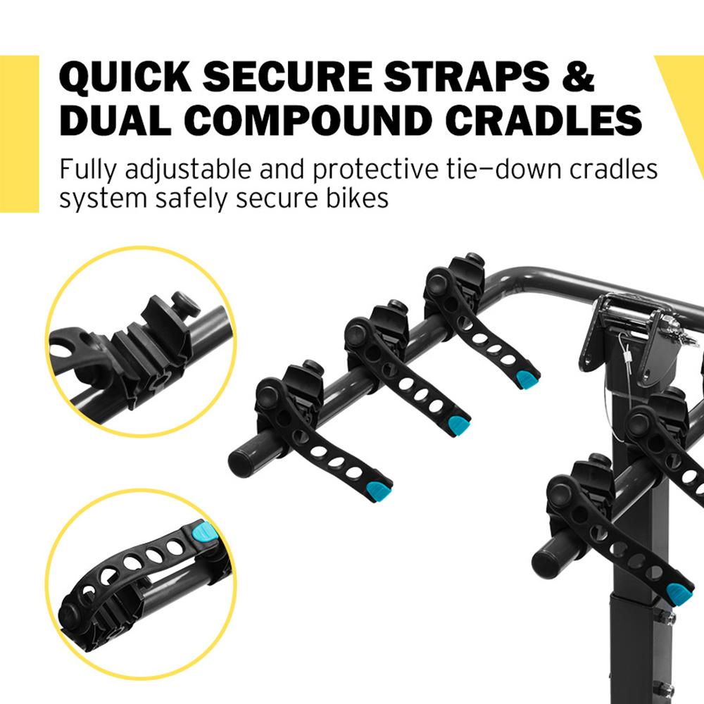 This amazing bike rack is user-friendly and simple to install. The U-frame design bike rack can be mounted on any car with standard 5.08cm receiver hitches. The package includes a heavy-duty 304 stainless steel U-bolt Anti-rattle hitch tightener, dual compound tie-down cradles & quick set straps that secure the bicycles. No-wobble bolts eradicate movement of the rack inside of the hitch. This carrier accommodates a wide range of bicycle frame designs, so you don’t have to worry about frame compatibility.