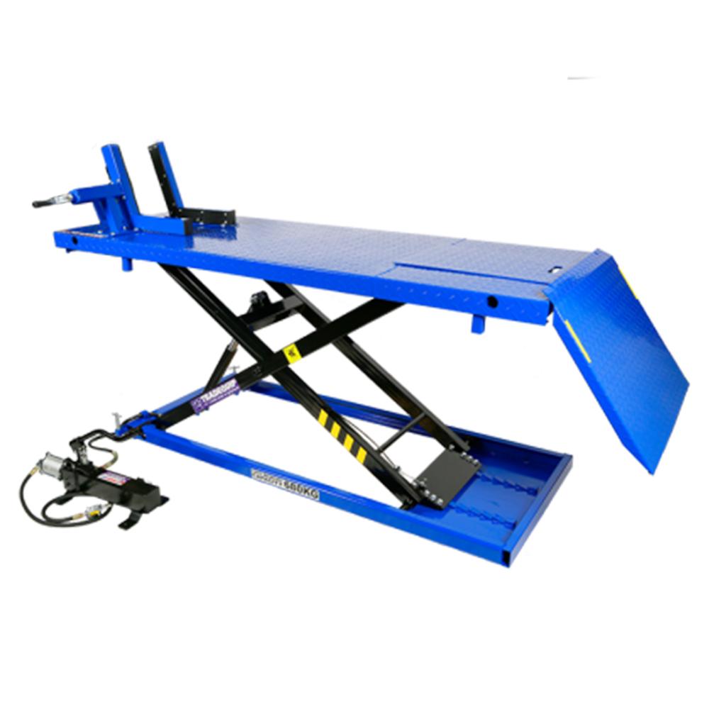 This air or hydraulic motorcycle lifter from TradeQuip is an exceptional tool for bike/ATV mechanics. This machine has a heavy lifting capacity of 680 kg and so it can easily lift bikes, ATV's or any other vehicle of appropriate dimensions.