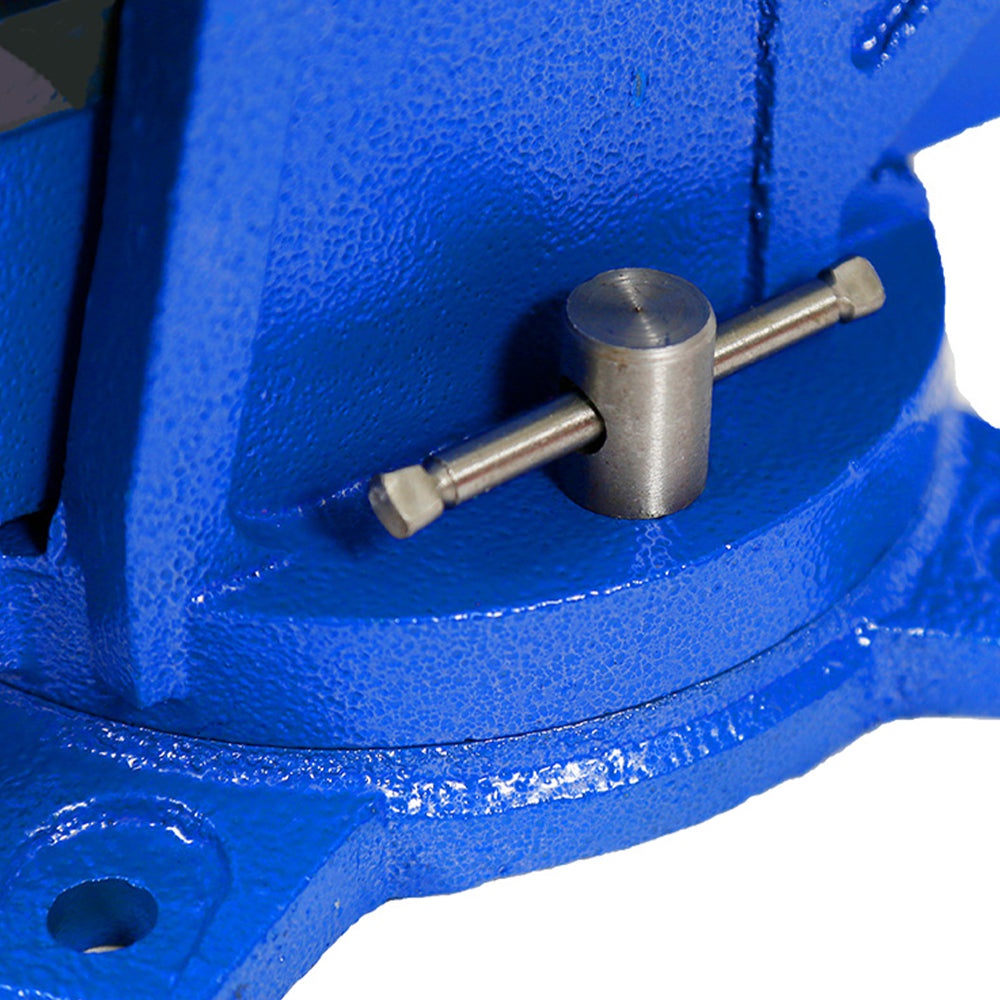 Conduct your vice and anvil related operations at once with this two-in-one vice. It features an integrated flat-top anvil that provides a flat surface for working with metals or other items. The vice has been made using high grade cast iron and features a rotating steel handle for tightening or loosening the clamps. The vice features a swivel base that offers a 120-degree swivel for operations.