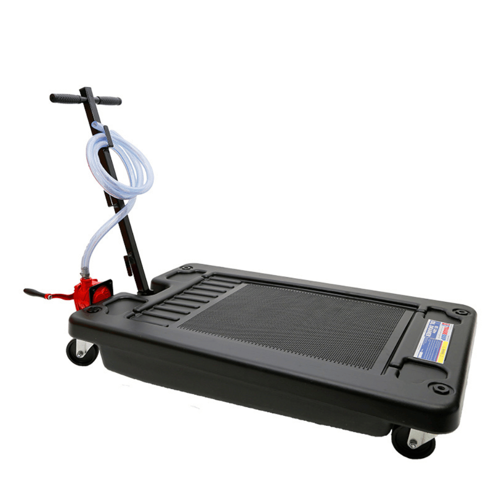 It has a low-profile design that can be easily positioned under high-clearance vehicles for capturing used fluids including engine oil, coolant and transmission fluid.