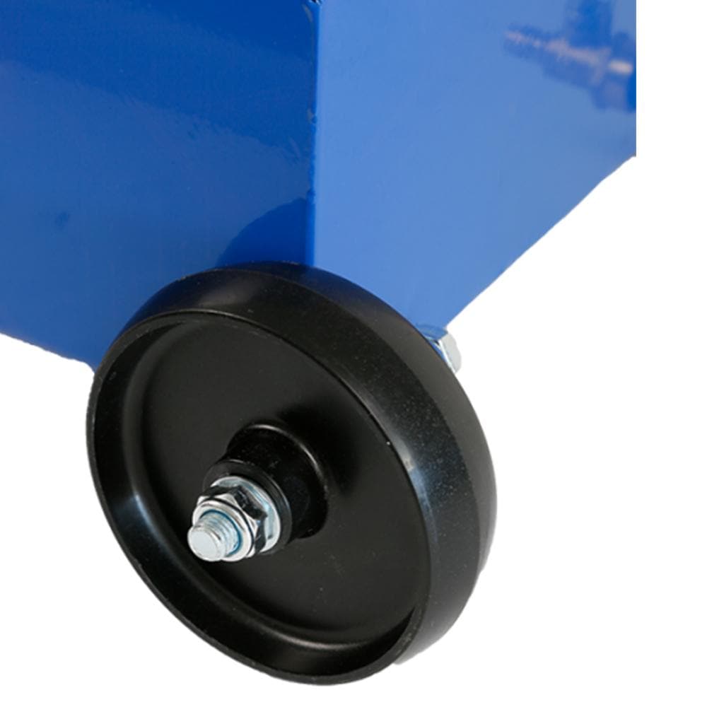 The TradeQuip 60 Litre Truck Fluid Drain Pan collects fluid into its 60-litre steel reservoir through its metal grate. This metal gate prevents unnecessary spillage during the duration of the vehicle draining process. Then, it easily transfers to and from its very own collection/disposal reservoir. Fitted with two fixed rear wheels and two front swivel castors, it allows you to experience convenient manoeuvrability and portability.