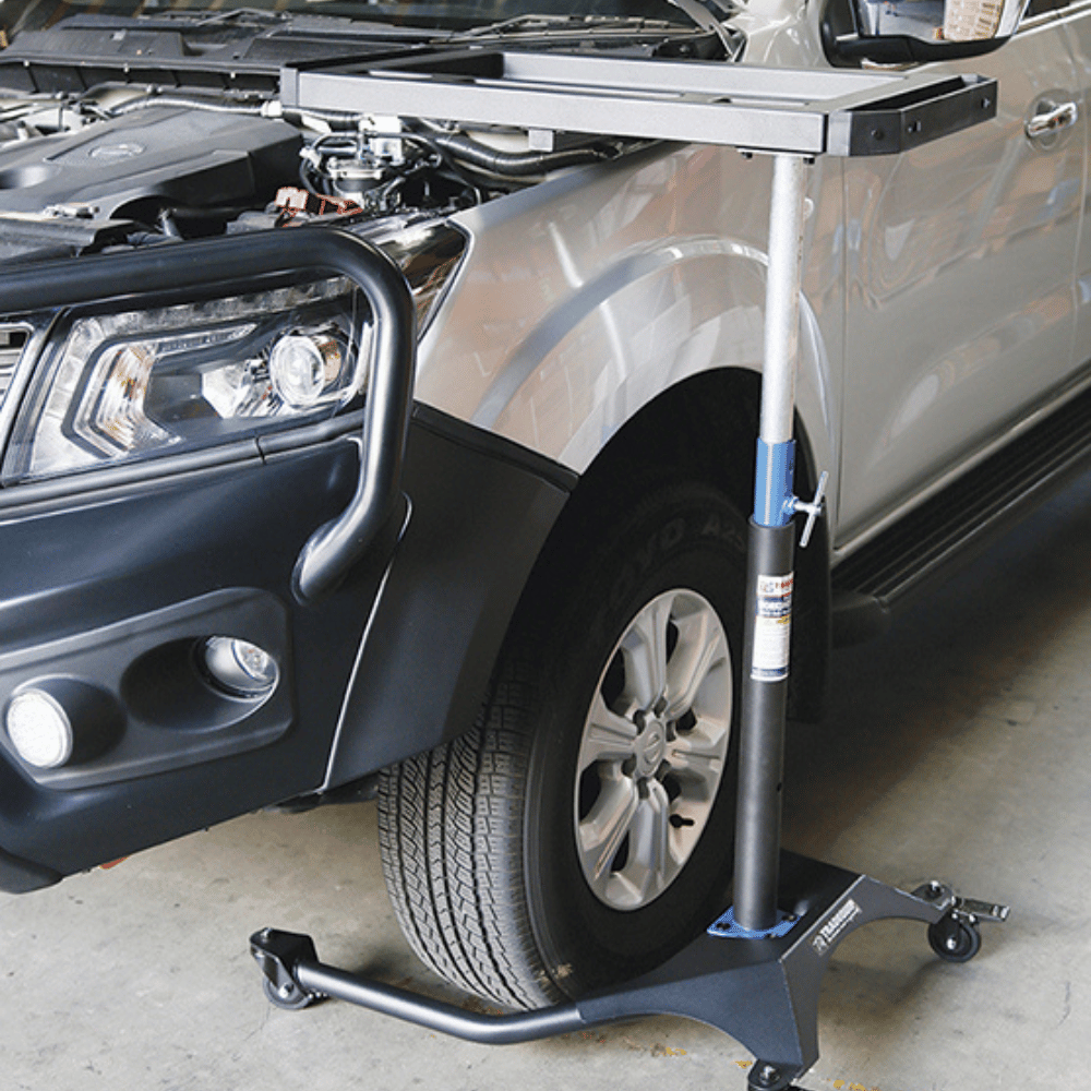 The smooth composite rubber castors ensure seamless mobility without damaging workshop floors, while the height adjustability offers versatility for various vehicle types, including lowered cars and SUVs. With handy tool storage holders and a protective bumper for the top tray, this versatile mobile worktop is a must-have for auto repairers and installation workshops.