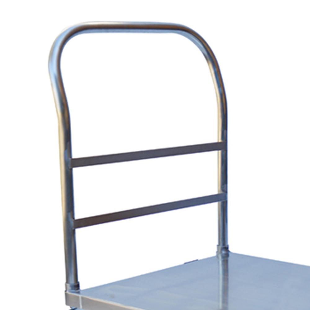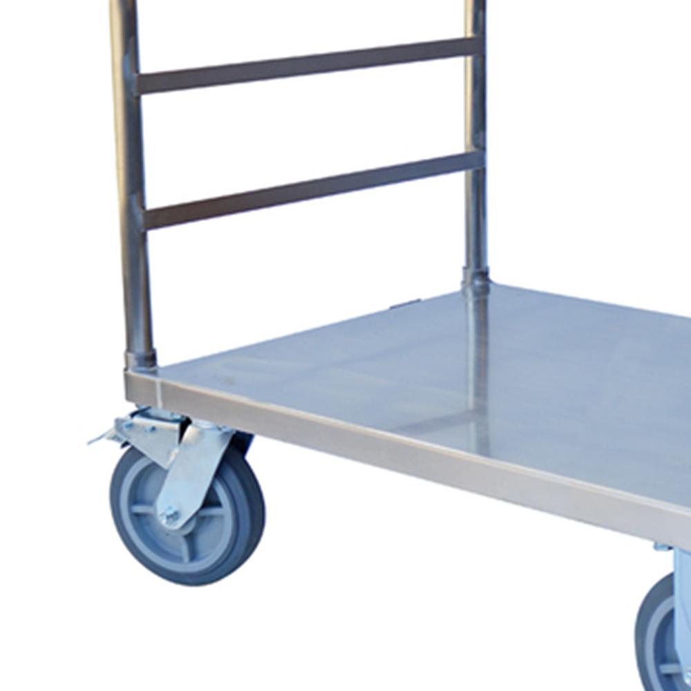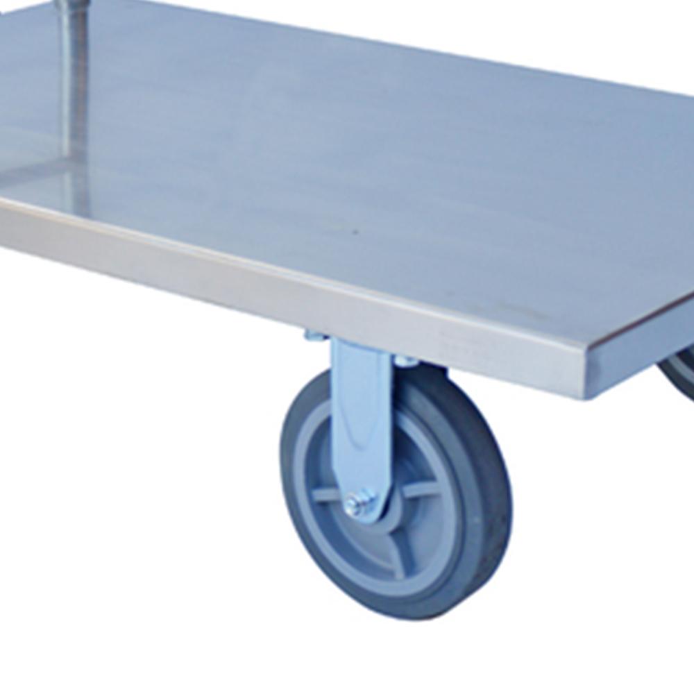 The manufacturer has used 304-grade stainless steel and offers the trolley in two different sizes. Hence one can choose according to their specific requirements. The large fixed handle on this trolley has two extra bars to support the cargo and prevent it from falling. The handle height is around 970mm whereas platform height is 280mm. Both are enough to easily move it around without caring about bumps or small obstacles
